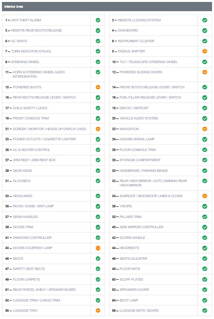 During an inspection, the car’s components are checked, and they contribute towards 1 point. Hence, with a comprehensive 180-point inspection, there will be 180 components checked all over the car, interior-to-exterior and top-to-bottom.