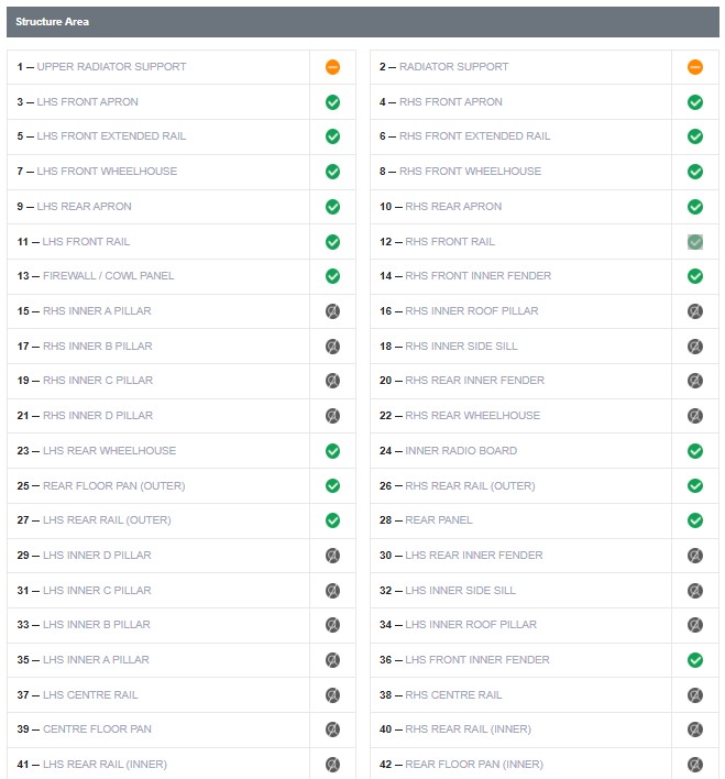 Car Structure Checks (42 components):